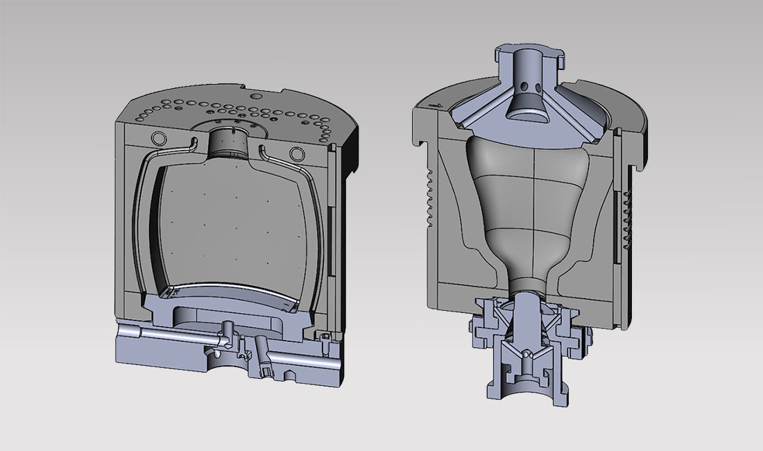We offer complete 2D/3D design of glass container equipment with parison design and volume and shrinkage calculations. With almost a decade of experience and couple hundred projects behind us we can tackle any challenge, shape or form of glass bottle.